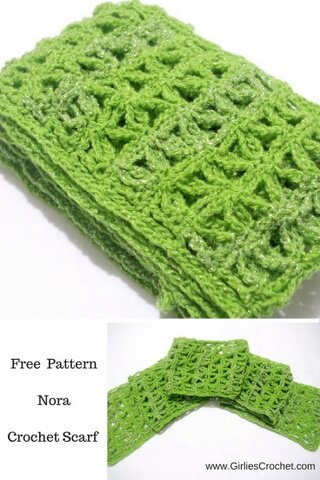 Here is our latest free crochet pattern, Nora Crochet Scarf This Nora Crochet Scarf is so easy, all you need to know is how to chain, crochet single, and treble crochet. This pattern is in 4 rows repeat, crocheted in one long scarf then continue to edging, without seam. This is an excellent pattern for those who want to have a quick and easy and yet a stunning design for a scarf. Previous Month Page AdditionHere is an update on the previous month’s additional postings: - Red Glam Scarf PDF File DownloadPDF File Download Now available, by popular request, PDF file formats for selected free patterns. There is no charge for the patterns. They are free. I do ask for a small donation in order to download the PDF file format. I have always wanted the patterns I create to be free and will strive to always keep it free crochet patterns. There is no greater feeling than that “sense of accomplishment” after having finished a free crochet project that’s enjoyed by my fellow crocheters. In all honesty, it was a great experience for me to create www.girliescrochet.com. It was the connections and bonds being cherished and the sharing of passions that motivated me to keep creating patterns. I am a stay at home Mom who designs and creates patterns to share and I enjoy crocheting. It has always been my joy to share the patterns I create but the cost has overtaken me. These are free patterns and your contribution will ensure that the patterns remain free at www.girliescrochet.com. I encourage everyone to visit and grab a pattern at PDF File Download If you like this e-zine, please do a friend and me a big favor and "pay it forward." If a friend did forward this to you and if you like what you read, please subscribe by visiting ... Subscribe Here! Comments? Ideas? Feedback? I'd Like to hear from you. Just reply to this e-zine and tell me what you think! Hope to see you again next month for our "Girlie's Crochet Tuesday Free Pattern" issue.